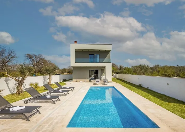 De Kathedraal van Maria-Tenhemelopneming is op 15 minuten met de auto gesitueerd. Gasten kunnen ook een bezoek brengen aan de Poort van Hercules, gelegen 7 km verder. De luchthaven Pula ligt op 15 km van de 4-badkamer villa.