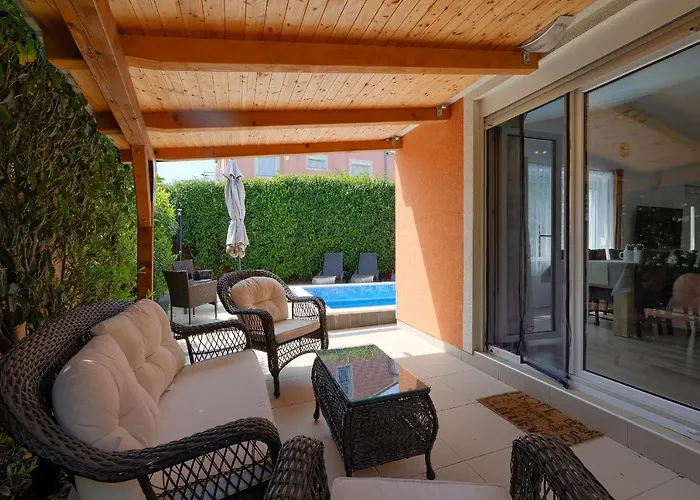 De 4-slaapkamer Villa Tena With Private Swimming Pool Medulin bevindt zich 6 km verwijderd van Boog van de Sergii en nodigt gasten uit om attracties in de omgeving te verkennen.